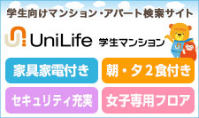 ユニライフでは、家具家電付きマンション・女性フロア付きマンションなど、安心して1人暮らしをスタートできるよう、物件を用意しております。初めての1人暮らし、ぜひお任せくださいませ。