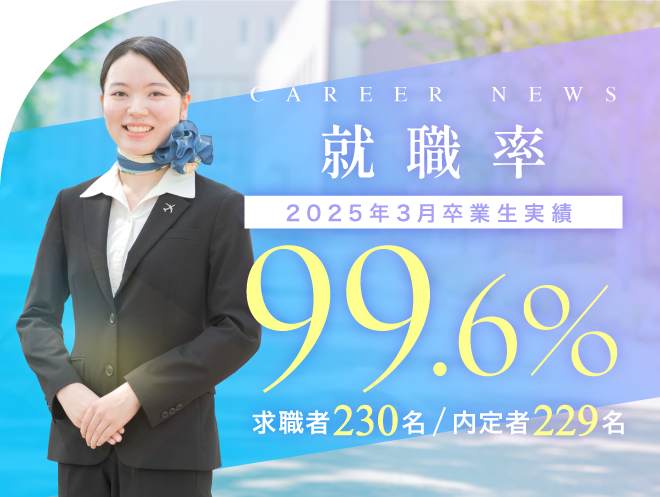 2025年3月卒業生の就職率は99.6%(求職者230名・内定者229名)を達成しました。