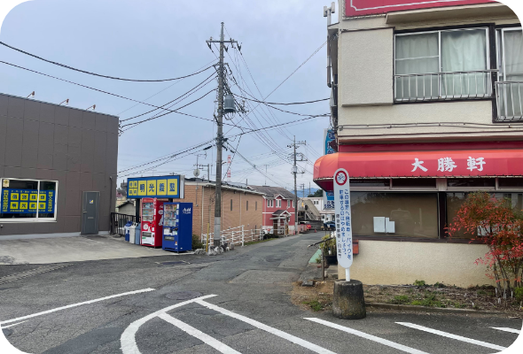 改札を出て左、「さくら口(南出口)」方面に進むとロータリーに出ますので、ロータリー向かって右の道を直進します。(右手に中華料理屋がみえる道です)