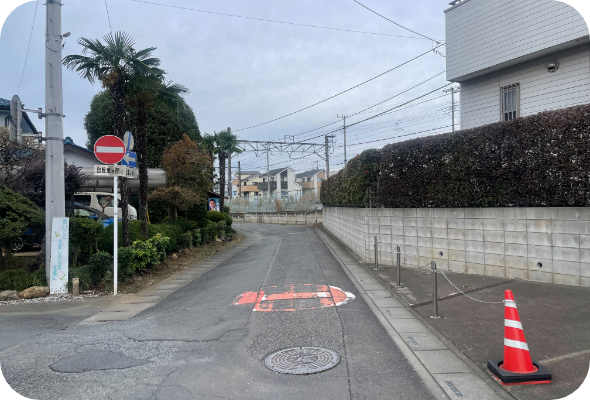 改札を出たら西口に進んでいただき、進んだ先最初に出てくる左手の階段を下りてください。降りた先に銀行がございますので、道なりに右方面に進んでいただき、左手にファミリーマートが見えてきたらそのまま直進します。