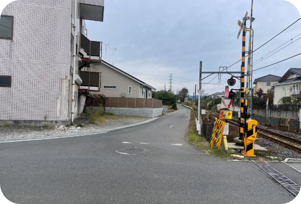 踏切が見えたら、そのまま直進します。