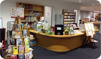 貸出・返却・レファレンス受付はこちらへ。リクエスト、ご意見も!
