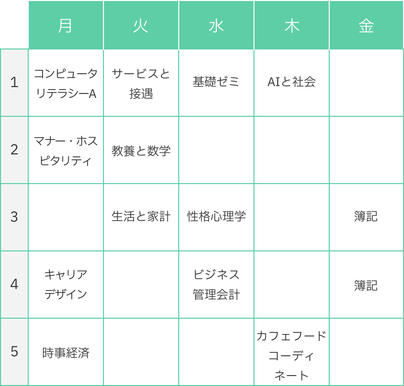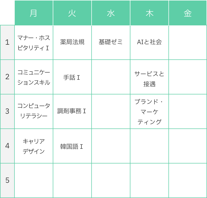 K・Tさんの1年時の時間割