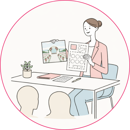 ブライダル企業への発表に向けて、プランナーに必要な市場調査と情報収集能力を養い、わかりやすく相手に伝えるための提案力や表現力を身につけます。