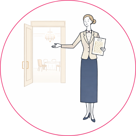 ブライダルに関する文化、慣習、マナーなどの基礎を学び、一人ひとりに合わせた挙式の演出方法を提案できるスキルを学びます。