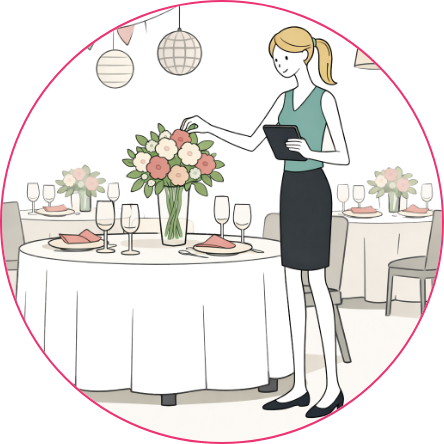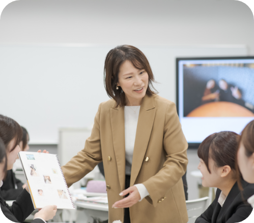 ブライダル業界の基礎を学び、コーディネート実務などの実践形式の授業を通じてウェディングプランナーに必要な知識・スキルを身につけます。